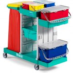 Carros de microfibra con cubos hermetic de 4 y 20 litros. Incluye soporte para bolsa de 120 litros y la posibilidad de adaptar el sistema de impregnación de paños «Dossely» con el que lograrás una limpieza mucho más eficaz. Esta es una herramienta que no te puede faltar a la hora de realizar limpiezas con el sistema de fregado plano.